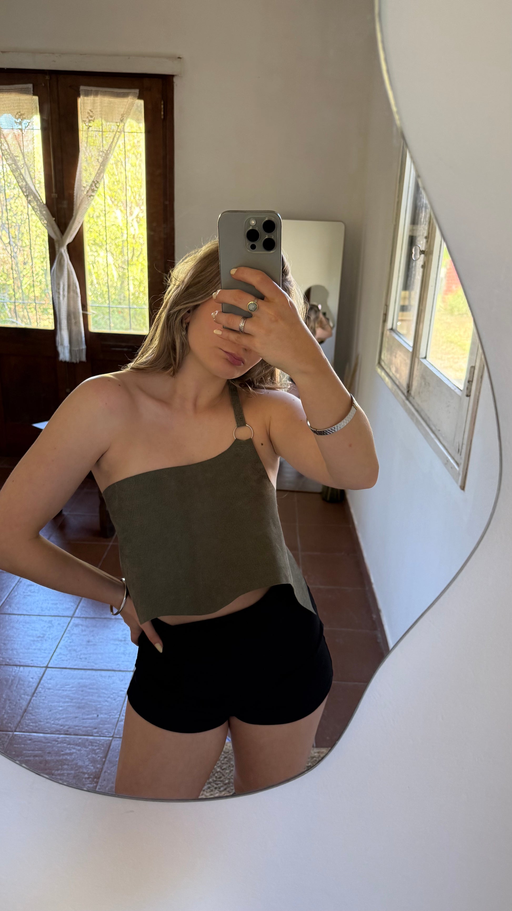 Top de cuero con espalda ajustable
