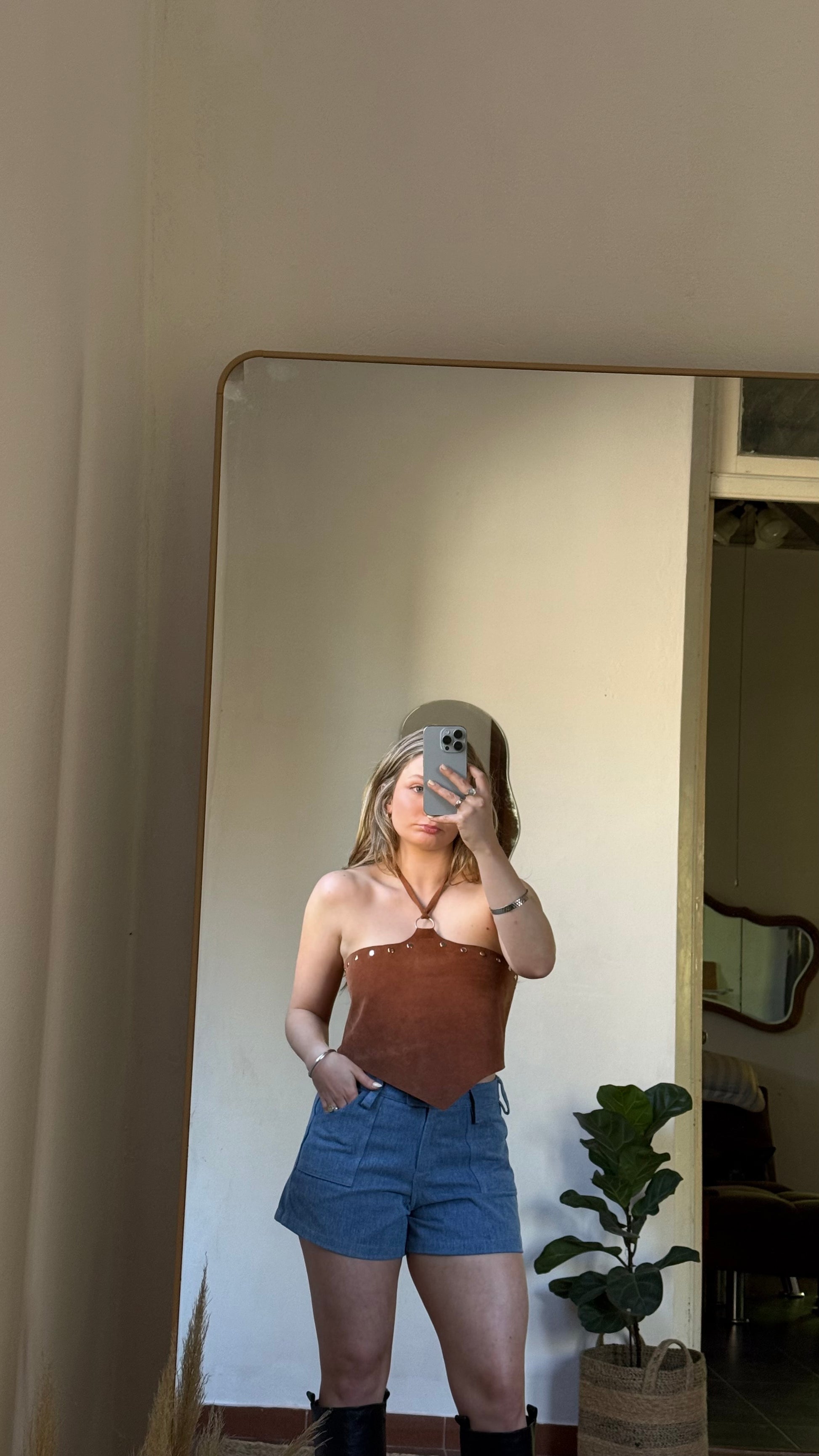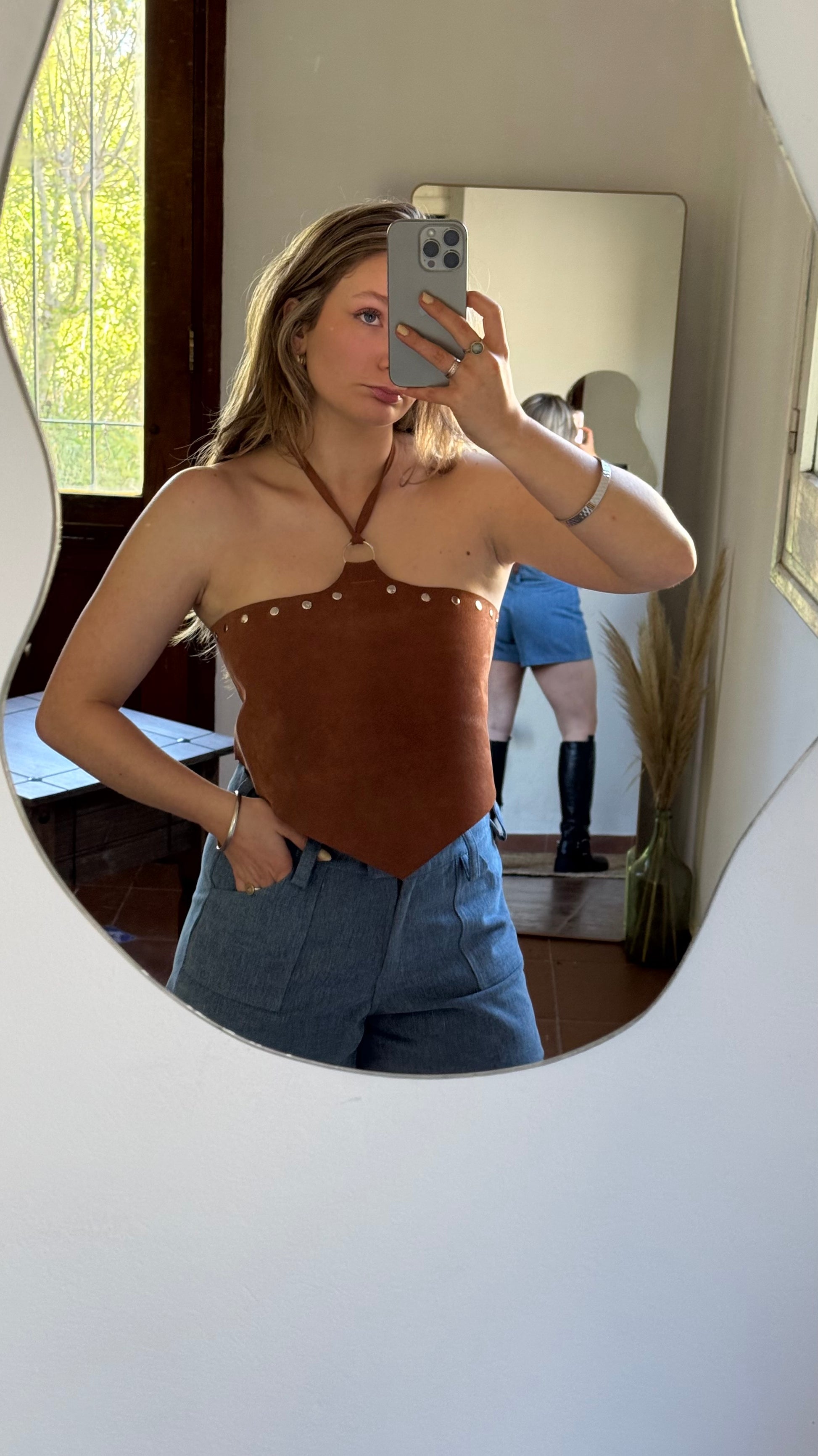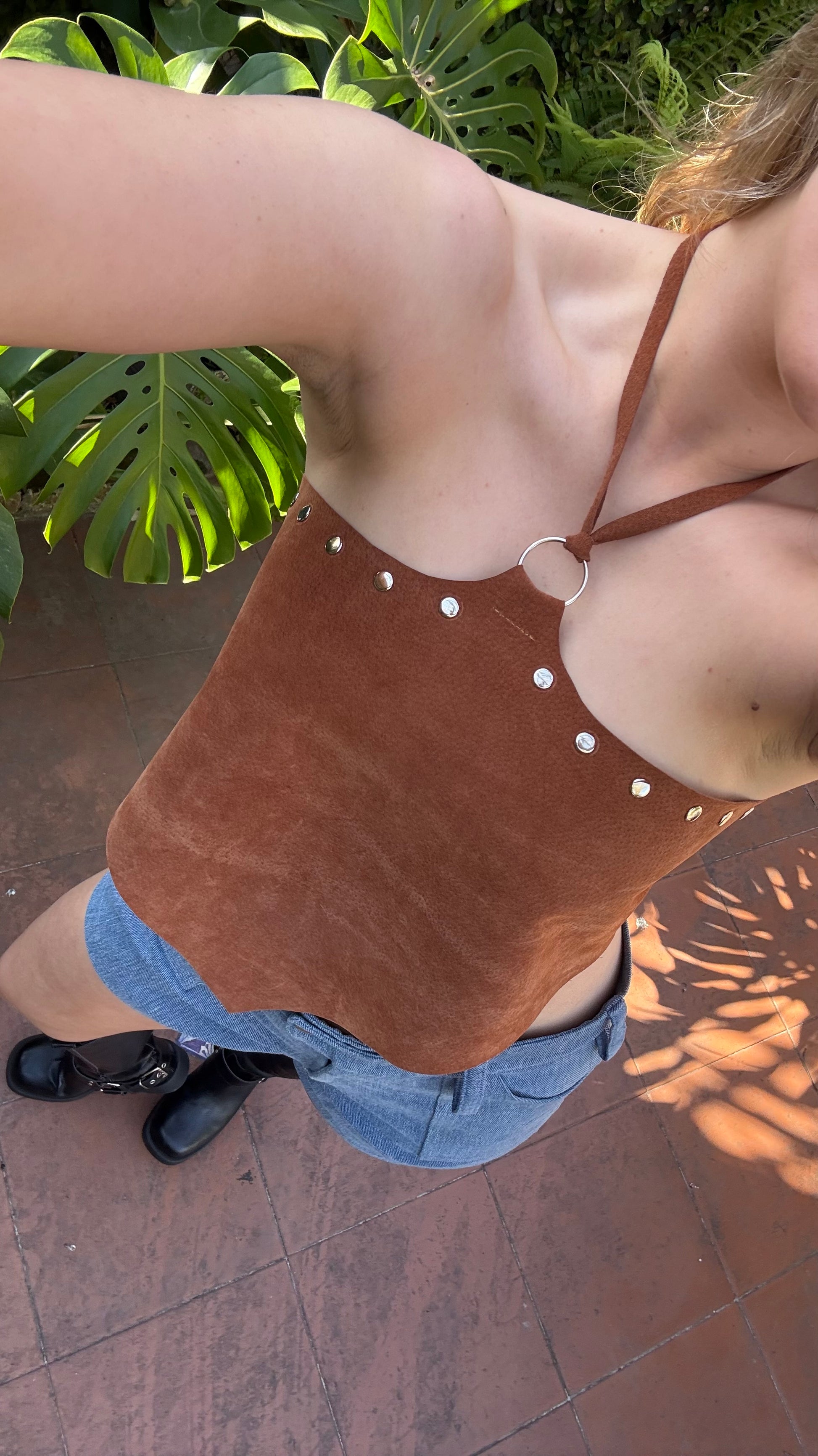 top hecho en cuero 100%